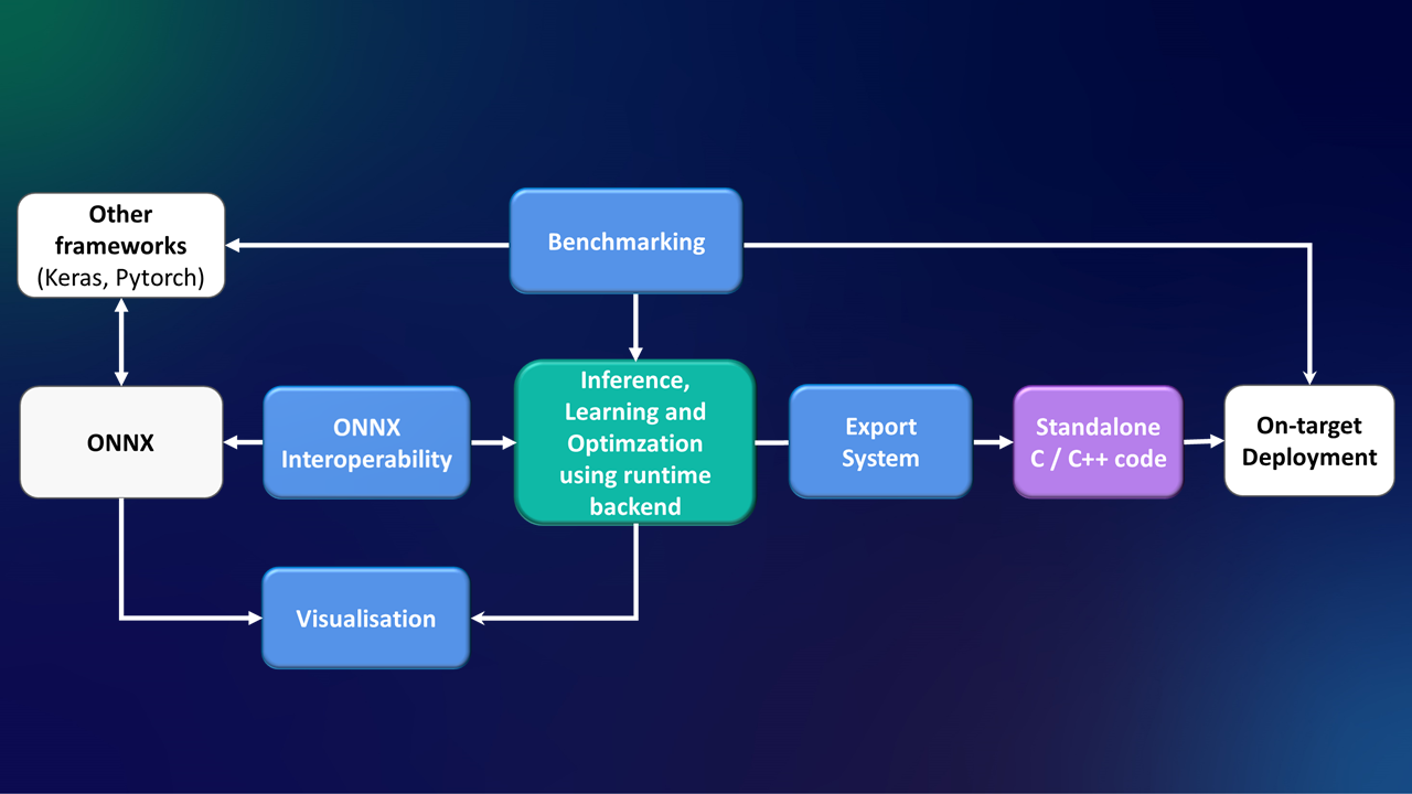 Aidge provides a comprehensive workflow to streamline the development and deployment of AI models for edge devices. Here is an overview of a typical workflow and the key functionalities Aidge offers.