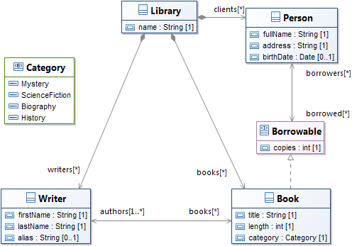 Sometimes, we need to retrieve all of the differences that were detected on (or that are related to) a given model element. For example, with the above example, we might want to retrieve the list of all differences that relate to Borrowable. Well, there are a number of them, which can all be collected through: