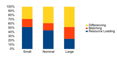 Note that these are "wall time" measures : we used a stopwatch to time the duration of the comparison, from a click on the "compare with > each other" action to the opening of the comparison editor.