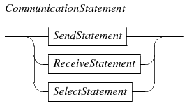 In Chi, communication takes place in a synchronous manner. This means that communication between a sending process, and a receiving process takes place only when both processes are able to communicate. Processes and channels can dynamically be altered. To model times, like inter-arrival times and server processing times, the language has a notation of time.