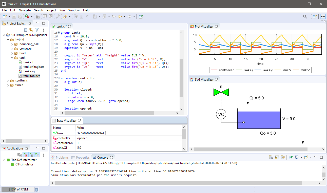 Part of the CIF tooling is a textual editor for CIF specifications. This editor is part of the Eclipse ESCET IDE. Below is a list of some of the more notable features of this text editor: