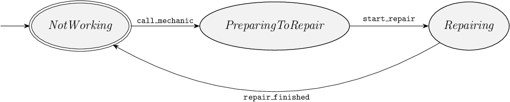 The mechanic's automaton also uses three events: call_mechanic, start_repair and repair_finished.