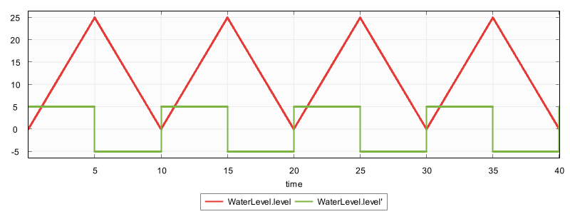 We use the derivative of the water's level to specify the velocity, instead of using a discrete variable.