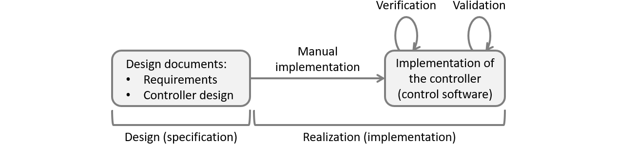 Traditional engineering is document-based. Requirements are written down informally in large requirement documents. They are used as input for controller design documents. The documents are then handed over to a different person, team or supplier, for the implementation. Implementation of the controller in software is done through manual coding. Verification and validation involve testing on the implementation. Traditionally, all five steps are performed manually, which is laborious and error-prone. The information documents often lead to ambiguous, incomplete and inconsistent requirements, which carry over to the design and realization.