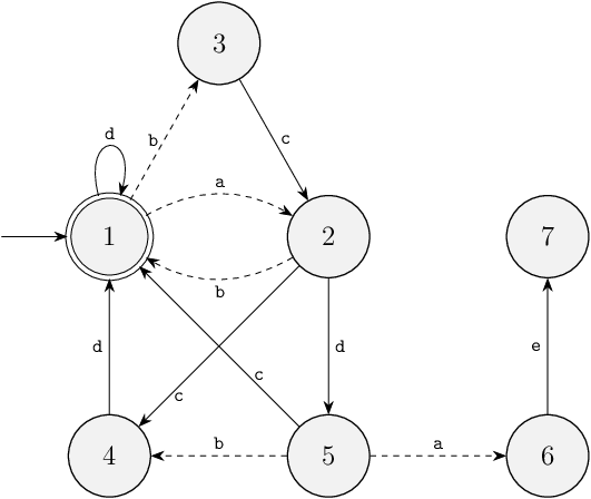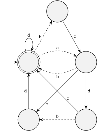 You may have already observed that some of the edges are depicted as solid arrows, while others are depicted as dashed arrows. The dashed arrows are edges with uncontrollable events. In this case, the button events are uncontrollable events. The operator can always push or release the button. The supervisor can't prevent this. The supervisor must never restrict these events from occurring, as it can't physically prevent the operator from pushing or releasing the button.