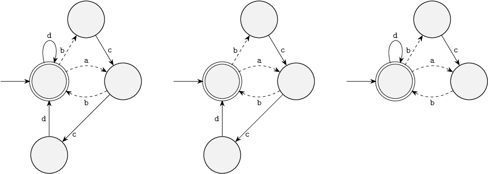 The final guarantee of synthesis that we'll look at here, is maximal permissiveness. Consider the following three supervisors, that remove all bad states from the example system that we just looked at:
