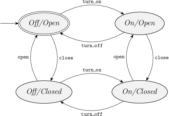 To deal with a requirement automaton during synthesis, it is first converted to a plant automaton and some state/event exclusion requirements. That is, the requirement automata is rebranded as a plant automaton. And all restrictions are moved to state/event exclusion requirements. The rebranded requirement then by itself is a non-restrictive plant automaton, that does not prevent any behavior. As an example, consider again the railway crossing example from earlier in this module, with the following state space: