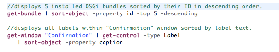 The scripting language should be extendable and let different adopters develop their own commands, which will be interoperable with other commands (such as Unix commands, for example). Moreover, these commands and internal data structures should be also interoperable with Eclipse Frameworks.
