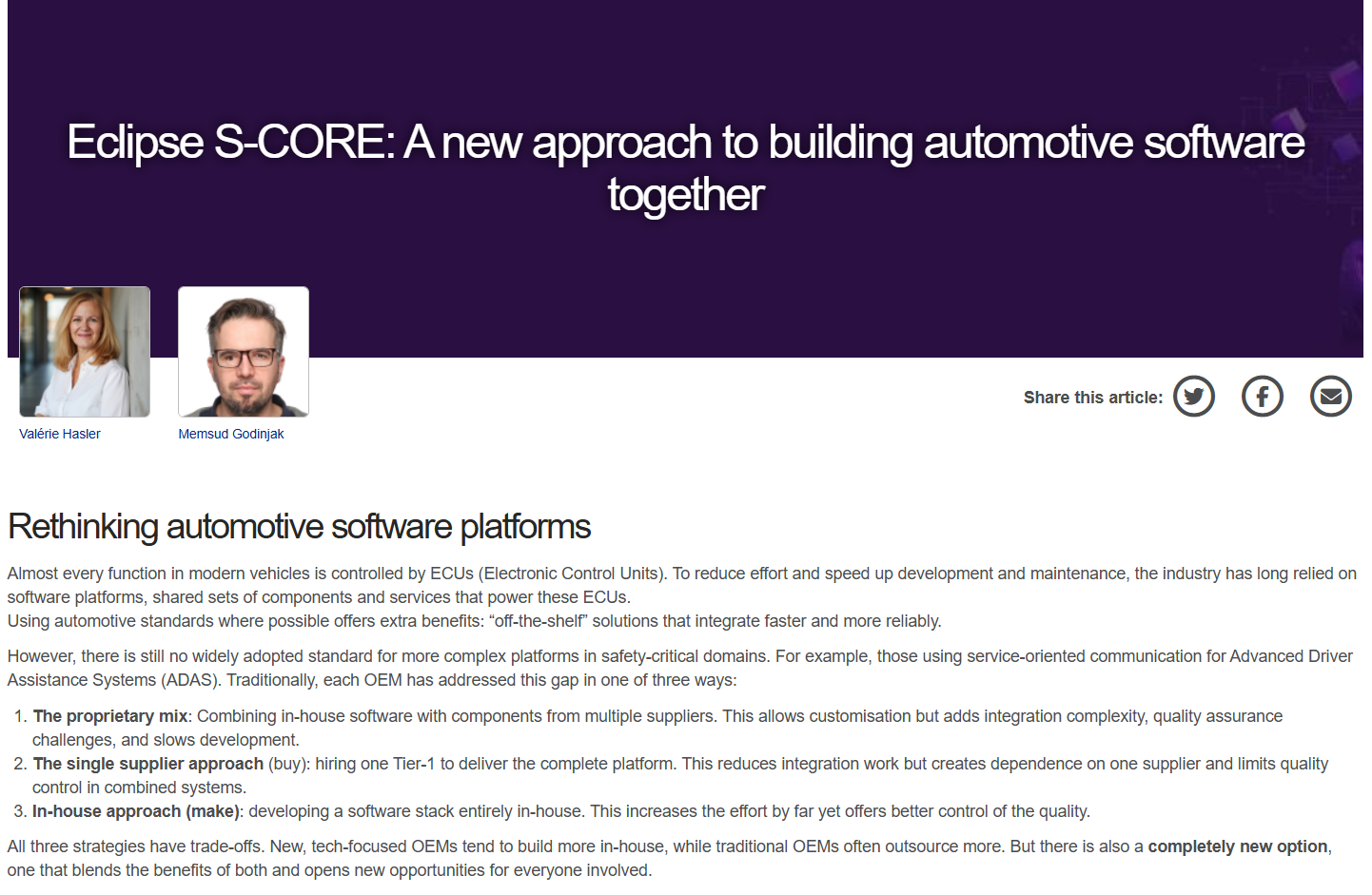 Eclipse S-CORE: A new approach to building automotive software together