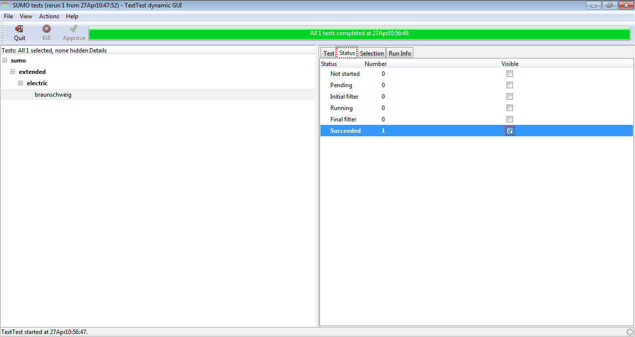 If the installation was successful, this window will appear after execution of ***<SUMO_HOME>***/tests/runAllTests.bat (Windows) or