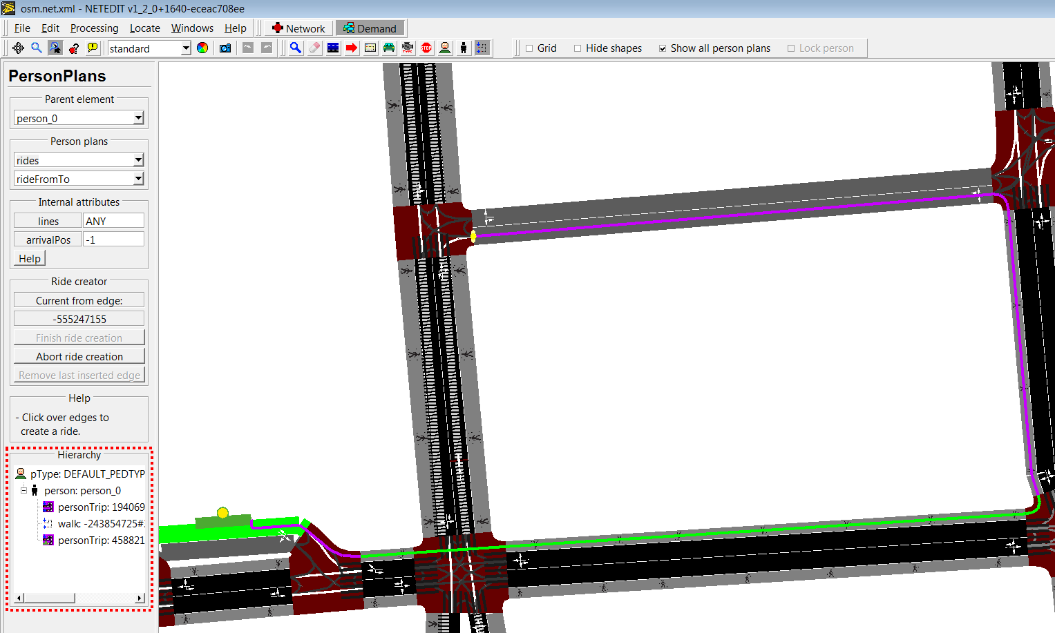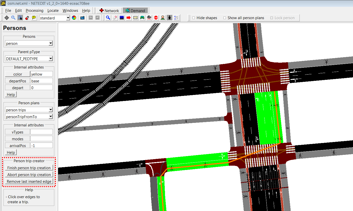 Creating person trip clicking over edges