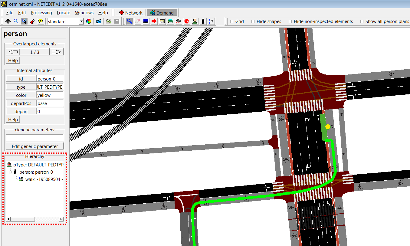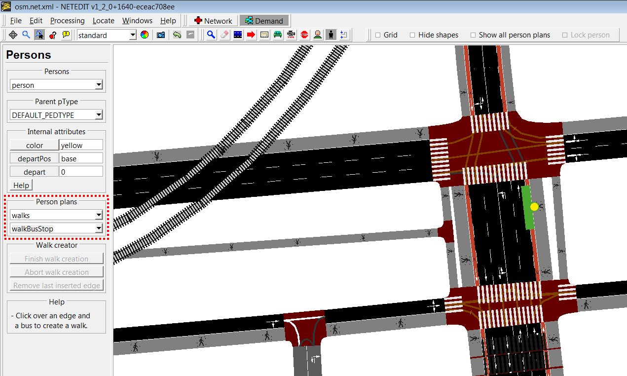 Vehicle types can be created and edited using Person Type mode. A person Type isn't a visual element that can be observed in the view, but is an "abstract". Every simulation has always a basic default pedestrian type. This default pedestrian type can be edited but not deleted, and only is written in XML if one of their default value is modified.