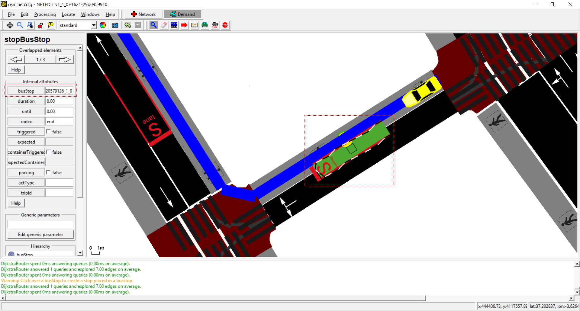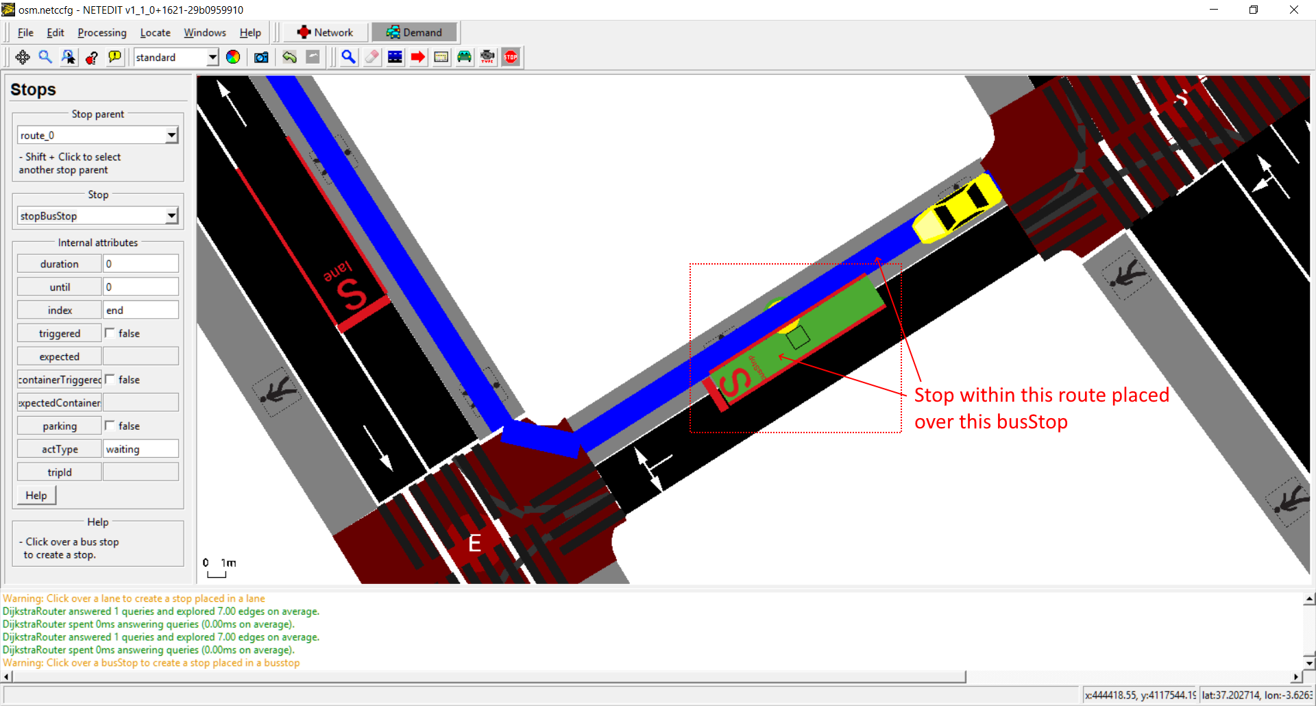 Inspecting a Stop placed over a busStop.
