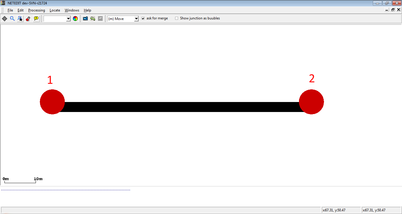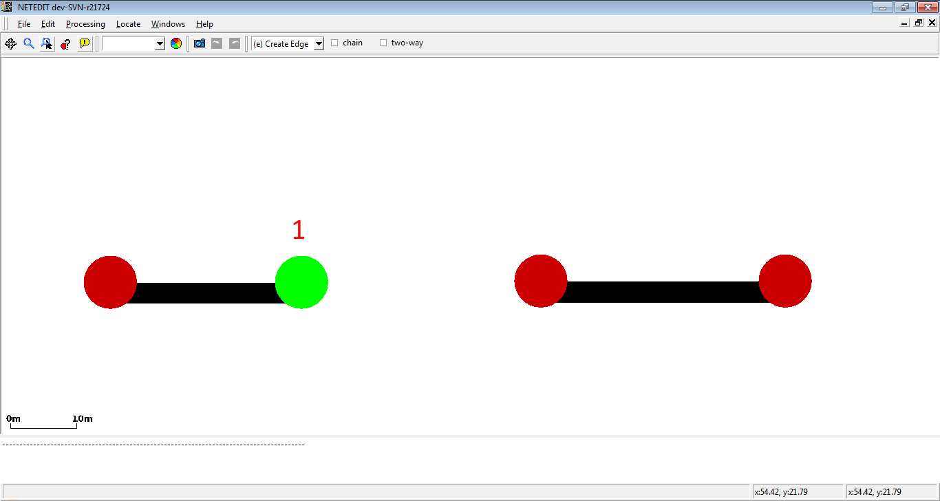 Then click in another empty area to create another junction. An edge with one lane between both junctions will be created.