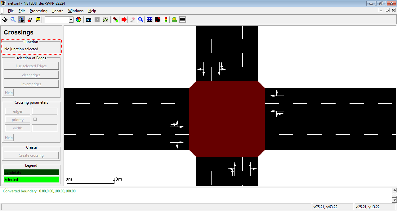 In crossing mode, first a junction must be selected.