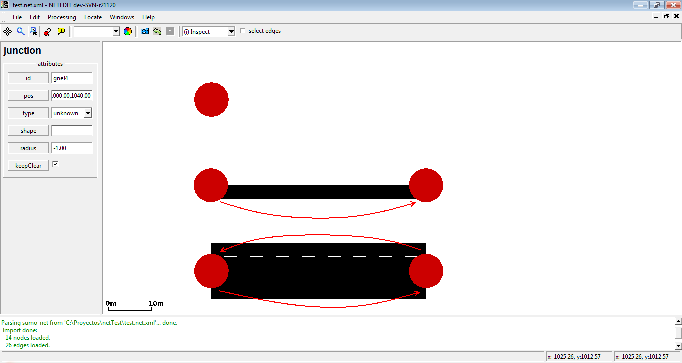 Junctions, (also referred to as Nodes), represent intersections. A SUMO junction is equivalent to a Vertex in graph theory.