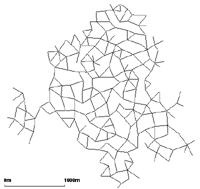 Spider networks are defined by the number of axes dividing them (parameter --spider.arm-number or --arms, default is 13), the number of the circles they are made of (--spider.circle-number or --circles, default is 20) and the distance between the circles (--spider.space-radius or --radius in meters, default is 100).