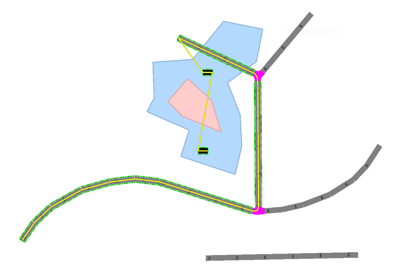Example: If multiple footpaths meet at an intersection they will be automatically connected by a single walkingarea which allows connectivity in all directions.