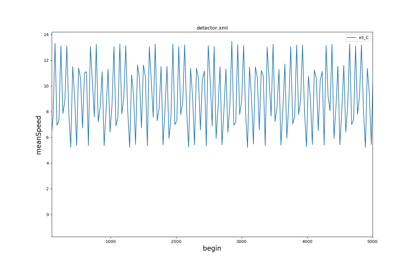 Call: python tools/visualization/plotXMLAttributes.py -x begin -y meanSpeed detector.xml --legend --xlim 100,5000