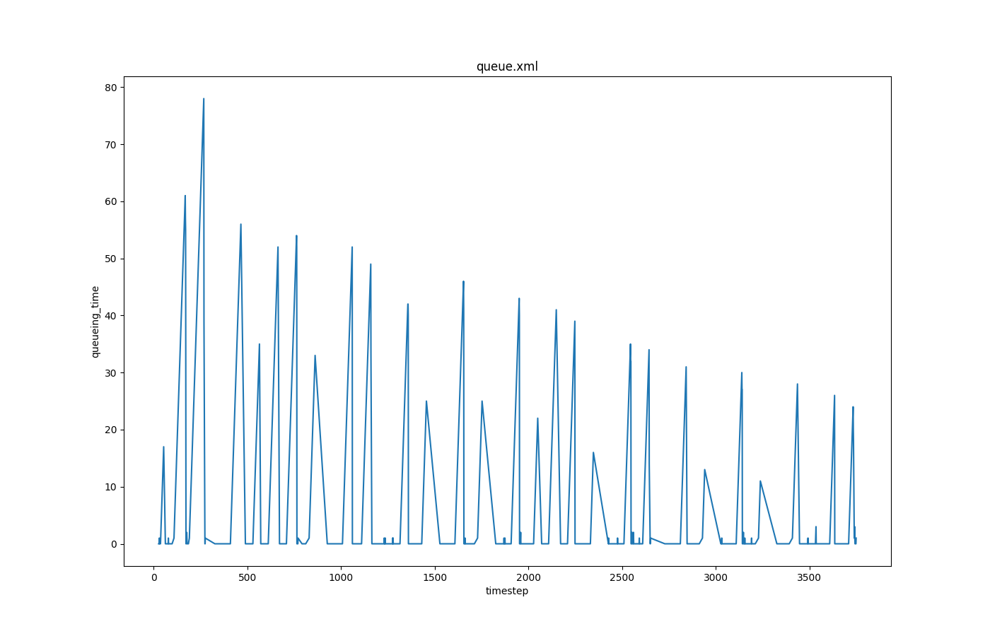 python tools/visualization/plotXMLAttributes.py -x timestep -y queueing_time -o queue.png queue.xml -i id --filter-ids 121_0