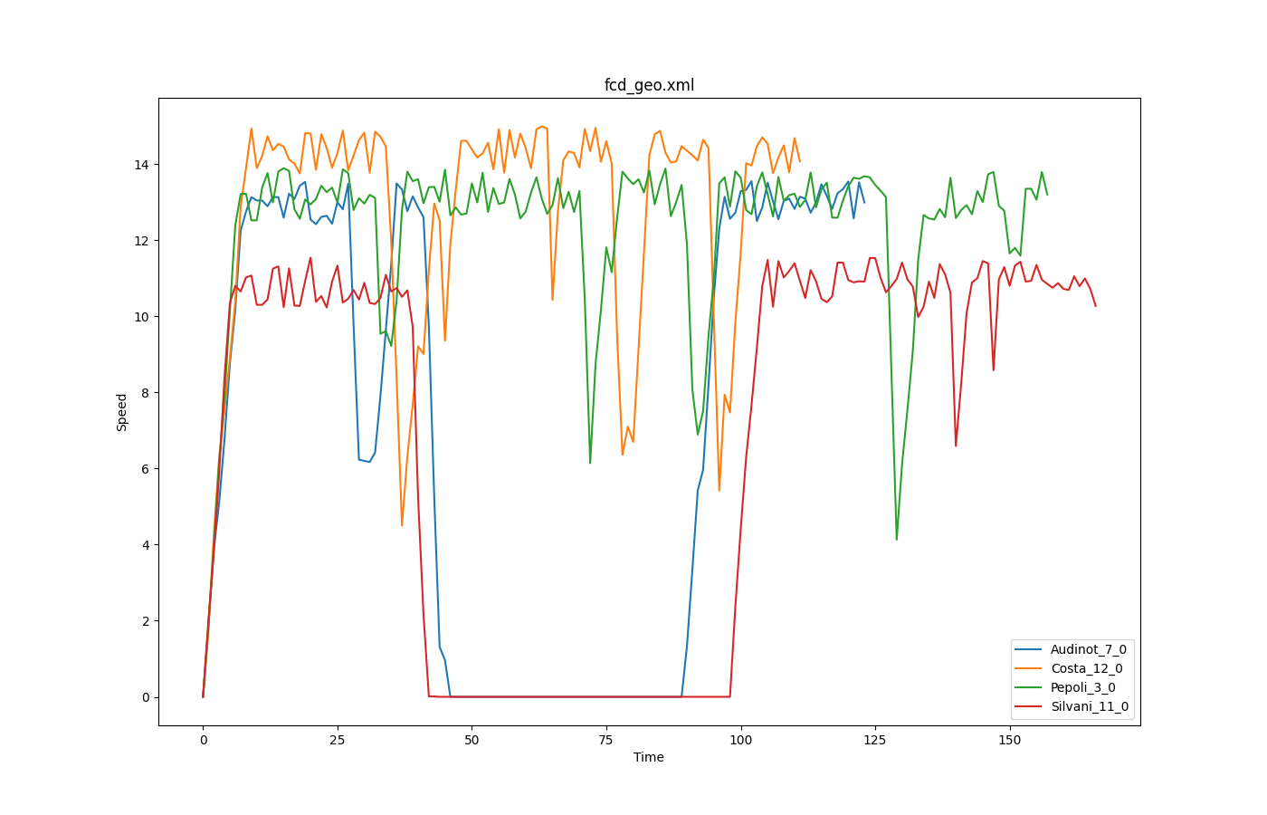 where -x is the attribute for the x axis; -y is the attribute for the y axis; -o is the output file name; -i is the filtered attribute name (vehicle id in this case); --filter-ids are the values of the filtered attribute name (vehicle id = Audinot_7_0 in this case); --scatterplot is to make a scatter plot instead of a line plot; --legend is to show the legend.