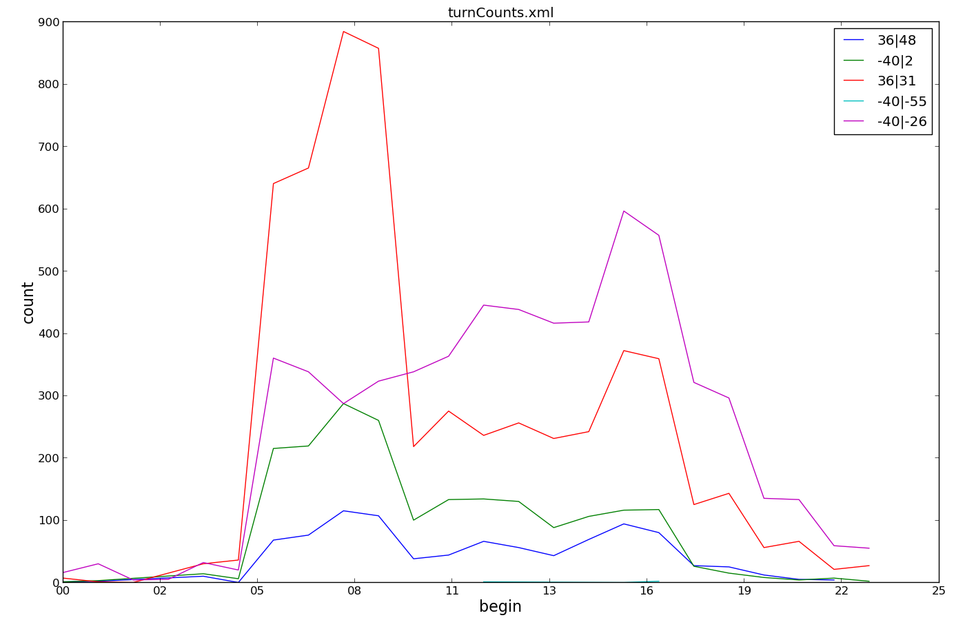 - Use netedit to select all edges at one or more intersection for which the flow shall be visualized and save the selection to a file (e.g. sel.txt)