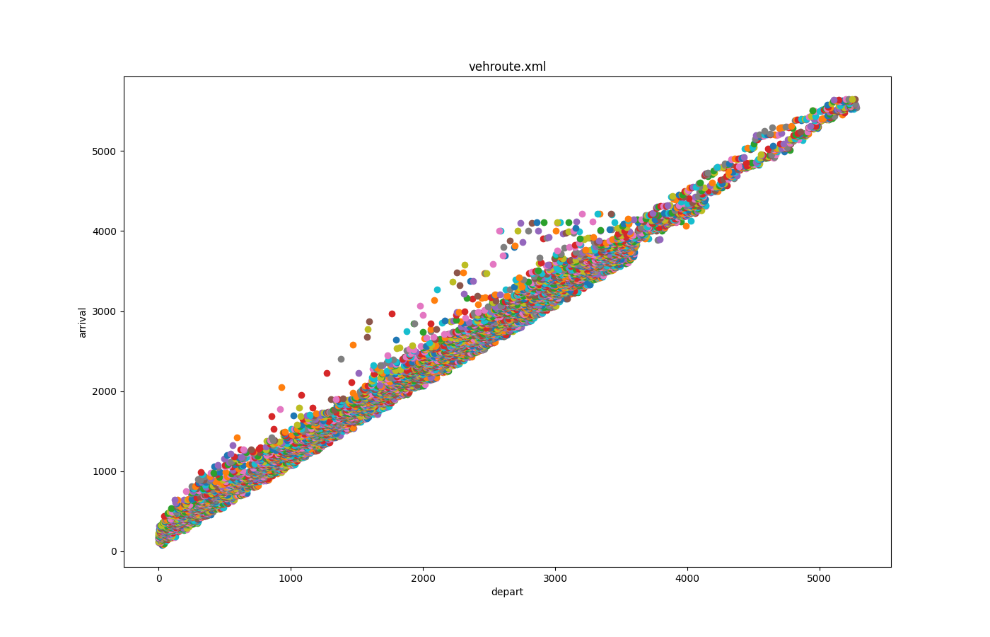 python tools/visualization/plotXMLAttributes.py -x depart -y arrival -o vehroute.png vehroute.xml --scatterplot