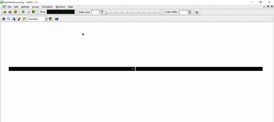 ) is set to at least 80 ms, as otherwise the simulation would happen very quickly and we would not be able to see our only vehicle in our tiny network.
