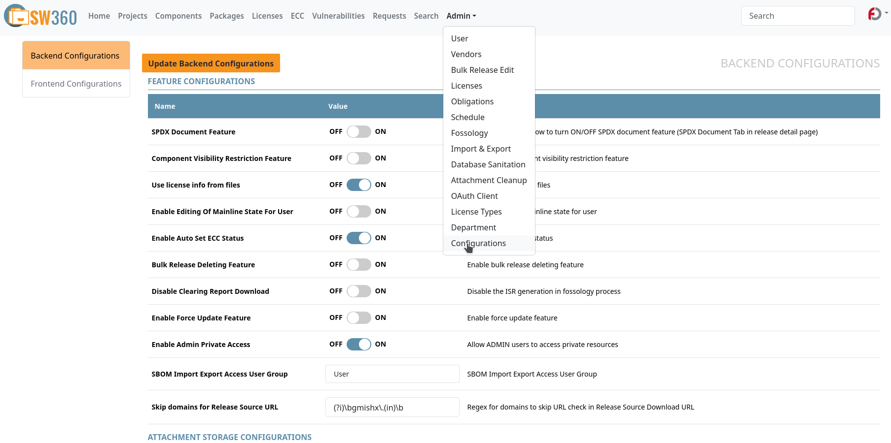 In SW360 v20, system administrators can manage most application settings directly through the user interface. This eliminates the need for manual configuration file edits for many standard adjustments.